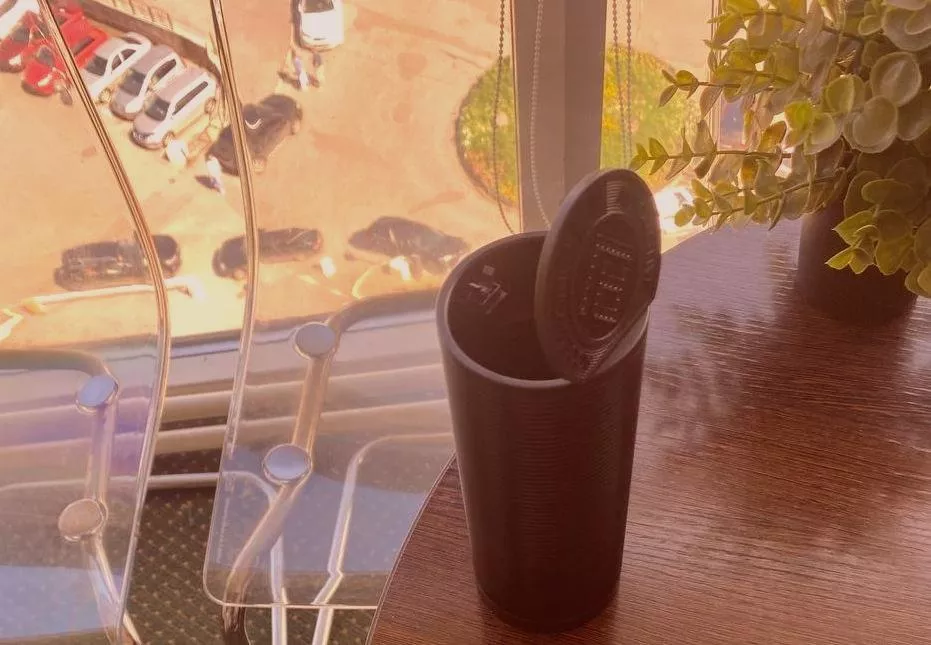 Click on the lid to open your Tesla Cup. Click again to close it.