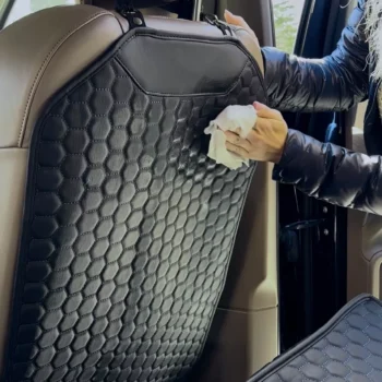 Featuring a sophisticated solid black color with a hexagonal pattern, our Black Car Seat Covers Protector fits seamlessly into any car interior. It not only guards your seat upholstery against dirt and shoe marks but also adds a touch of style.