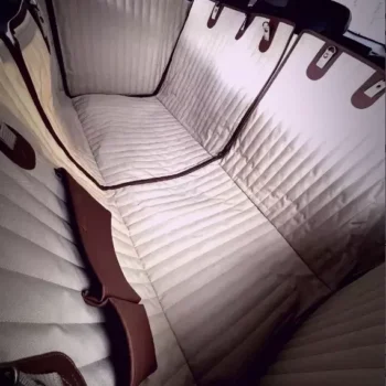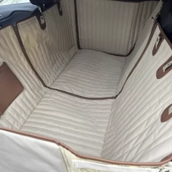 Our beige-colored dog hammock is the perfect choice for protecting cars with light-colored upholstery, blending seamlessly with bright interiors for a clean and sophisticated look. Its neutral tone not only complements the car’s aesthetic but also ensures that no color marks or stains are left on the seats. This stylish and practical accessory keeps your vehicle’s interior looking pristine while offering reliable protection for your seats.