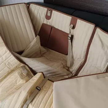 Our car hammock for dogs is designed to be foldable, collapsing into a flat, compact shape with convenient built-in handles for easy transport. Once folded, it can be neatly stored in your car’s trunk, taking up minimal space when not in use. Its lightweight and portable design also makes it simple to carry with you while traveling, ensuring your dog’s comfort wherever you go without the hassle of bulky equipment.