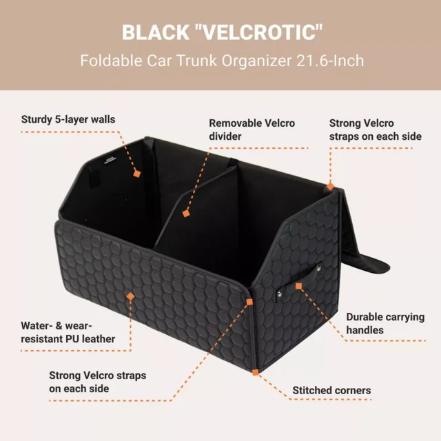 This product has been such a great addition to my car! Its robust construction ensures that it can daily use without any issues at all. I love its two deep compartments which are perfect for storing everything from emergency kits to water bottles, and the removable Velcro divider means I can customize storage based on what I need that day.