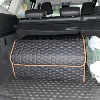 - Crafted from heavy-duty eco-leather, 210D Oxford fabric, and reinforced with hard PVC inserts, this trunk organizer is designed for longevity and can endure frequent use without damage.