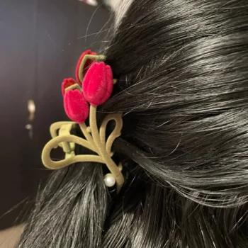 Whether you’re heading to work, attending a wedding, or simply enjoying a day out, this Elegant Retro Velvet Tulip Hair Clip with Pearl Accents is your go-to accessory for creating natural and fashionable hairstyles effortlessly. It’s not just a practical tool for styling your hair; it’s also a beautiful decoration that adds a unique charm to any outfit.