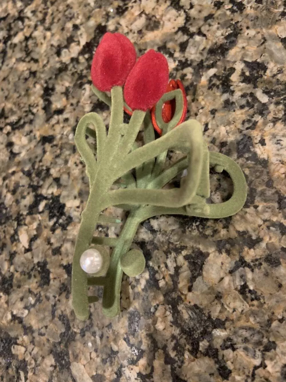 Introducing the ultimate accessory that blends timeless retro allure with contemporary girlish charm – our Elegant Retro Velvet Tulip Hair Clip with Pearl Accents. Designed for those who appreciate the beauty of vintage-inspired elegance, this exquisite hair clip is a must-have for your accessory collection. Whether you’re dressing up for a special occasion or adding a touch of sophistication to your everyday look, this hair clip is guaranteed to elevate your style.