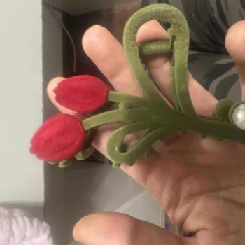 Made with high-quality materials, this durable and strong hair clip boasts a fine and comfortable texture that makes it a perfect companion for your hair. The unique flocked tulip design, combined with an innovative shark clip shape, showcases your unique taste while ensuring your hairstyle stays securely in place. The charming pearl accents add a sweet, girlish touch to the overall design, making it an irresistible choice for fashion-forward individuals.