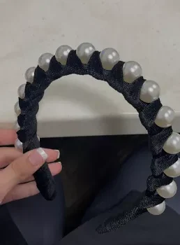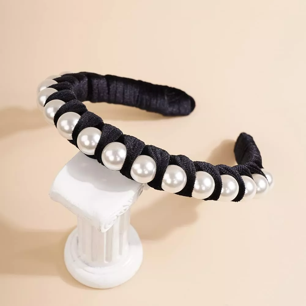 Every aspect of this hairband has been crafted with precision and care, ensuring not only an exquisite aesthetic appeal but also comfort and durability. Made with high-quality canvas and rubber materials, it provides a snug fit without compromising on comfort. The large, woven pearls exude a sense of luxury and opulence, making this hairband a unique addition to your collection.