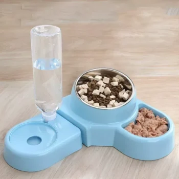 Blue 2 in 1 Pet Water and Food Bowl with Automatic Feeder
