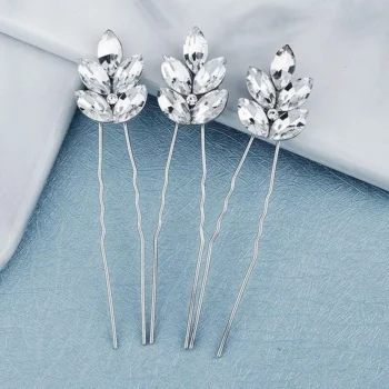 Elegant Crystal Hair Pins for Brides – 3pc Silver Wedding Hair Accessories Set