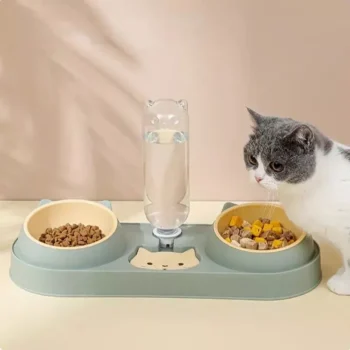 Double Dog & Cat Bowls with Water Dispenser