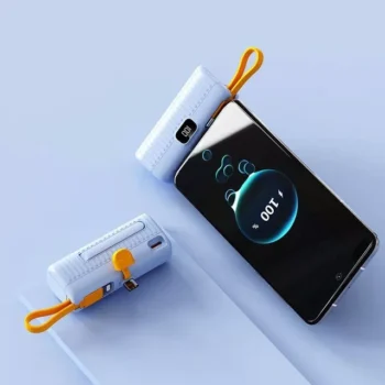 Ultra-Compact 10000mAh Power Bank with Built-In Cables and Digital Display