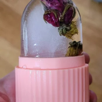 I recently got this product and I'm loving it! I use it every day, sometimes even twice. It's simple and fun to use, and really relaxing. Initially, I was a bit disappointed it didn't come with flowers, but that didn't matter once I started using it. You just fill it with water, squeeze a little out, and freeze it. It's best to leave a bit of space for the water to expand. After freezing it overnight, it's perfect for my skincare routine. It's cold at first, but you get used to it. I recommend using it over the sink. I definitely suggest trying this out; it's become my favorite over other face rollers.