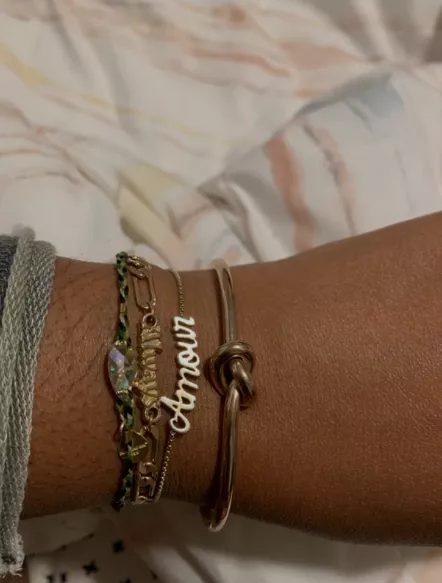 I chose this bracelet seeking one that complements all outfits, and it's just perfect – delicate and lovely in gold. Its adjustable size is a bonus for someone with small wrists like mine, making it a standout accessory that eliminates the need for others. I'm very pleased with it.